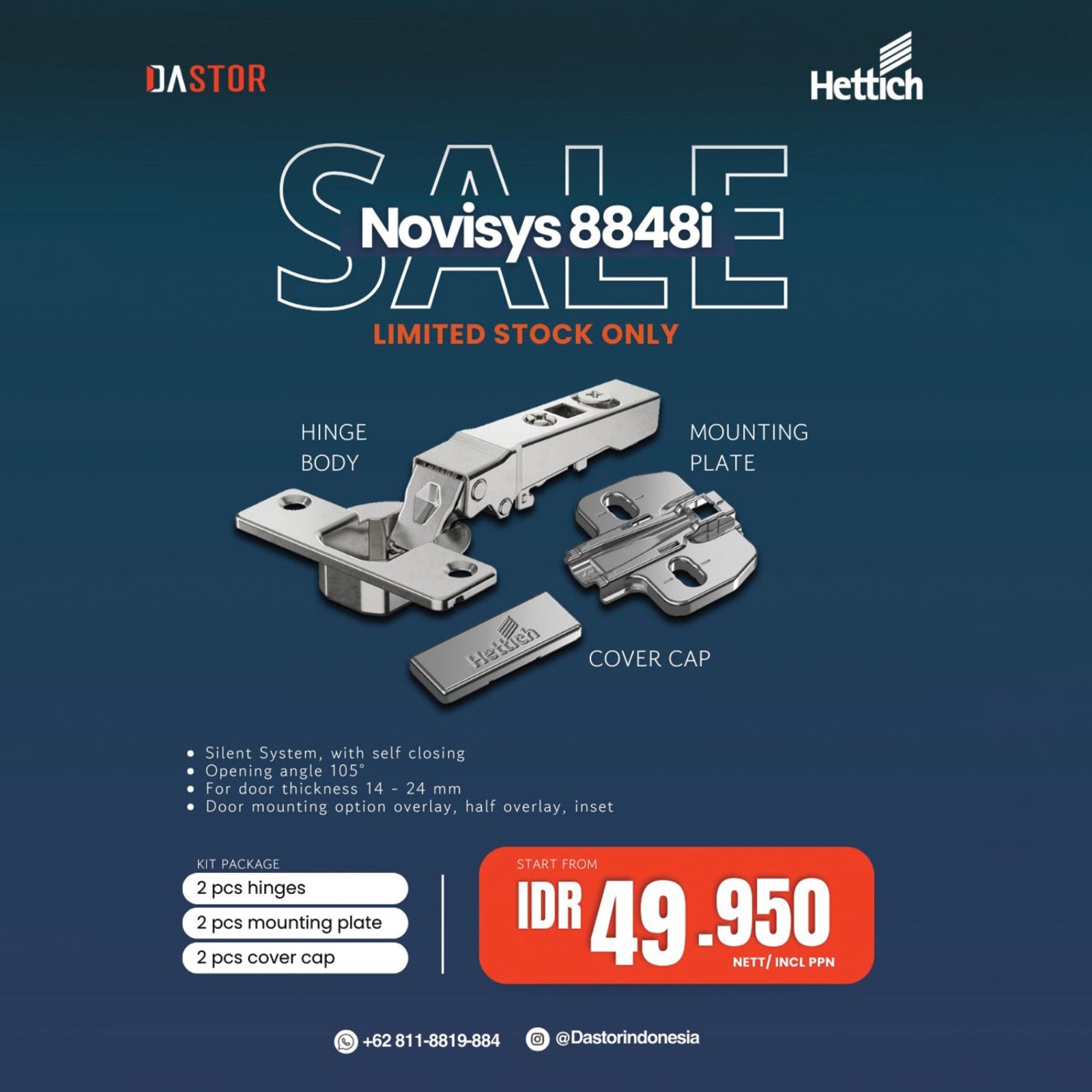 (0.0)Hettich Novisys 105° hinge with integrated silent system